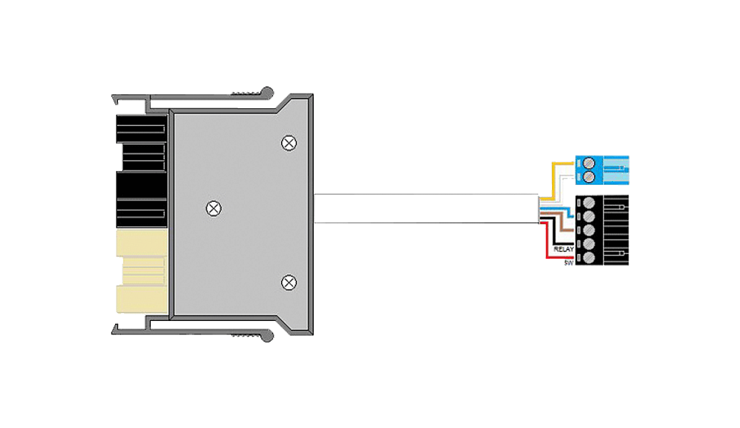 Lead to connect dimmable REA 7 sensor to an REA 7 BLBK 10X6/7P MB or REA7 BLBK 5X6/7P MB Lighting Control Module (LCM) – Blue/black 7 pole male locking LCM connector to 5+2 pole female blue-black non-locking sensor connector, 7 x 1mm2 conductor cores.