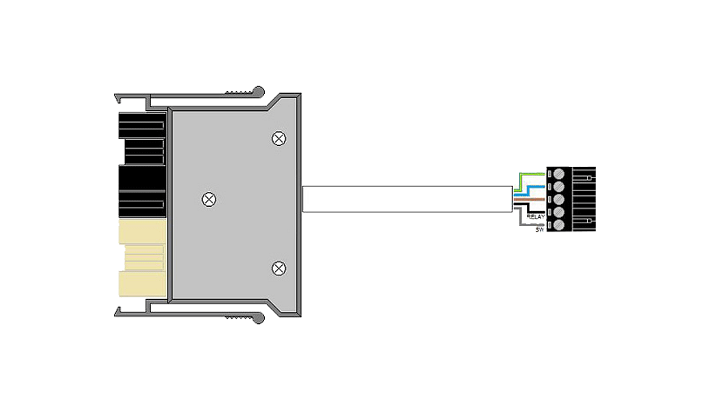 Lead to connect non-dimmable REA 7 sensor to an REA 7 BLBK 10X6/7P MB or REA7 BLBK 5X6/7P MB Lighting Control Module (LCM) - Blue/black 7 pole male locking LCM connector to 5 pole female black non-locking sensor connector, 5 x 1mm2 conductor cores.