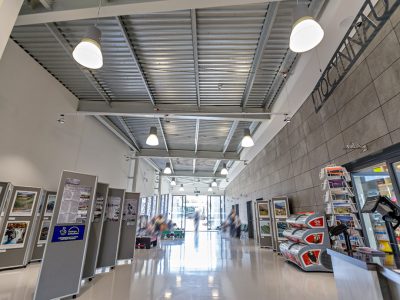 For this project, we supplied lighting for the stations’ shop, cafe, office, main commercial kitchen, ticket desk and waiting area. We also supplied lighting for the WC and lobby, plant rooms and storage area, glass-roofed rotunda area, and both the front external and back external areas of the new station building.