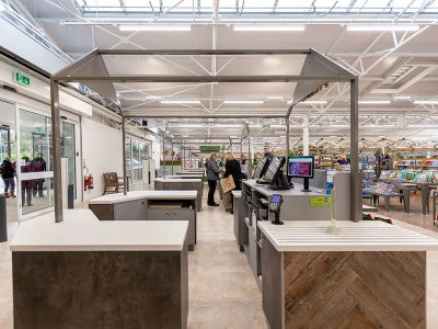 The ECOPAK LED was selected for the main sales floor in the garden centre, which provided a bespoke track-mounted solution facing up and down on both sides of the 3 circuit track.