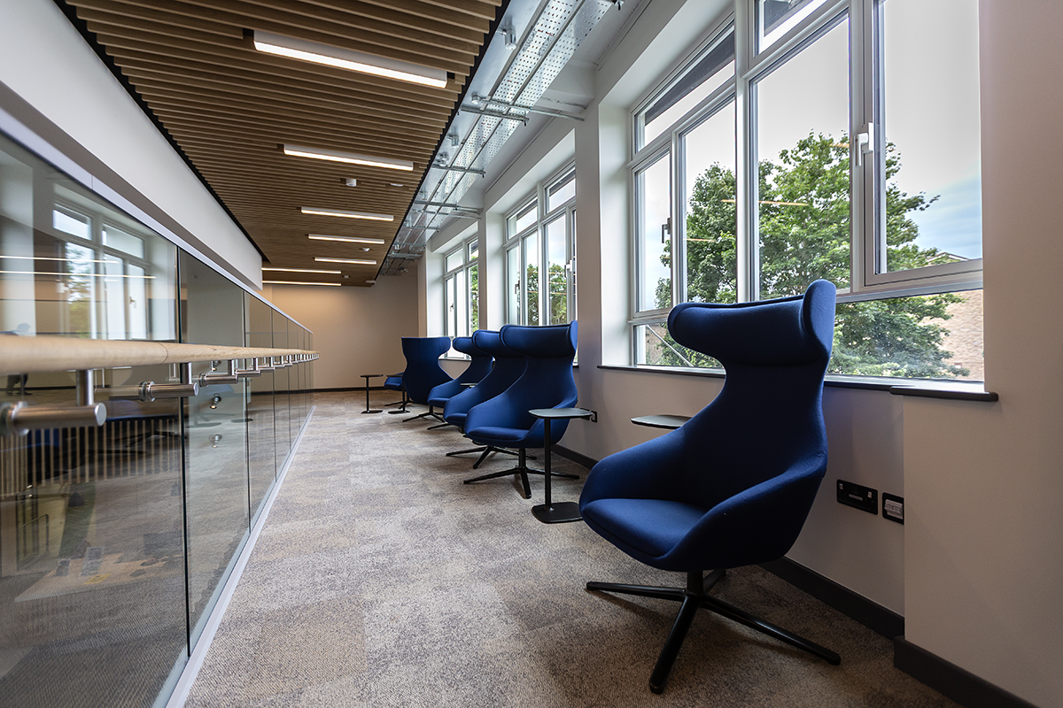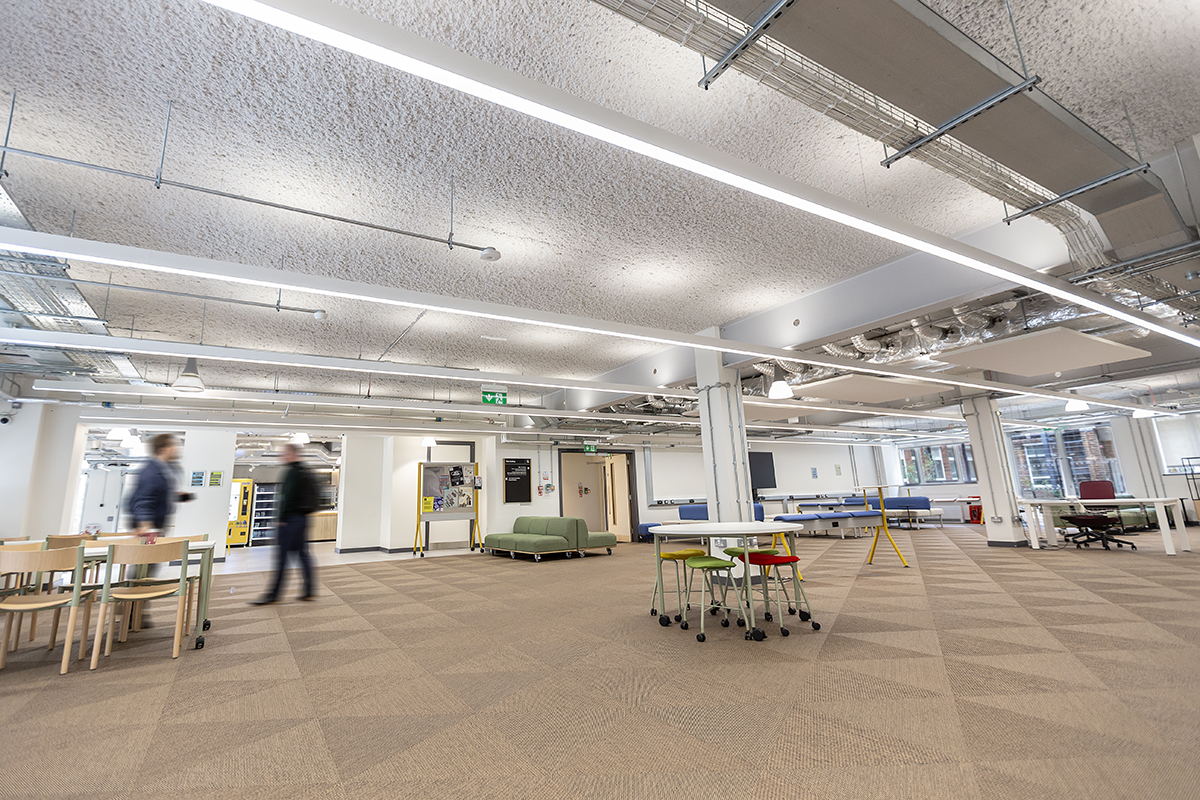 This latest project was part of a larger phased refurbishment at the University that kickstarted in late 2023, starting with the ground floor but closely followed by the first floor in early 2025. Both phases have benefitted from the same carefully specified lighting strategy.