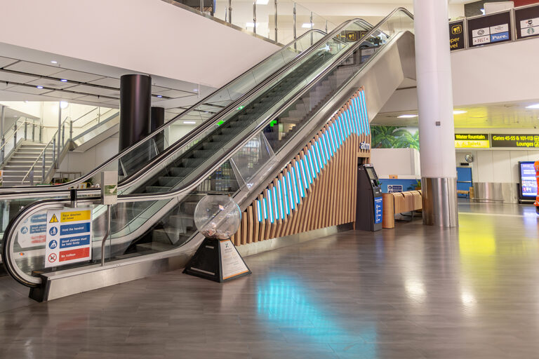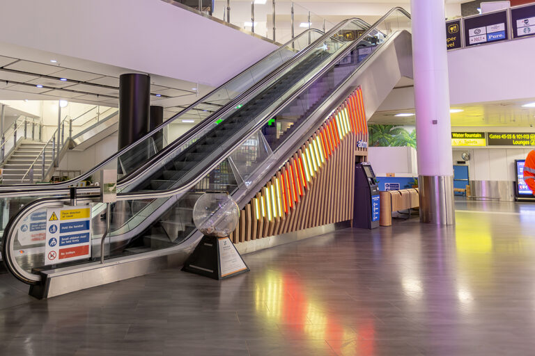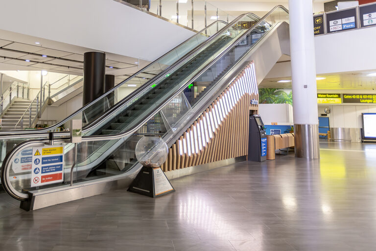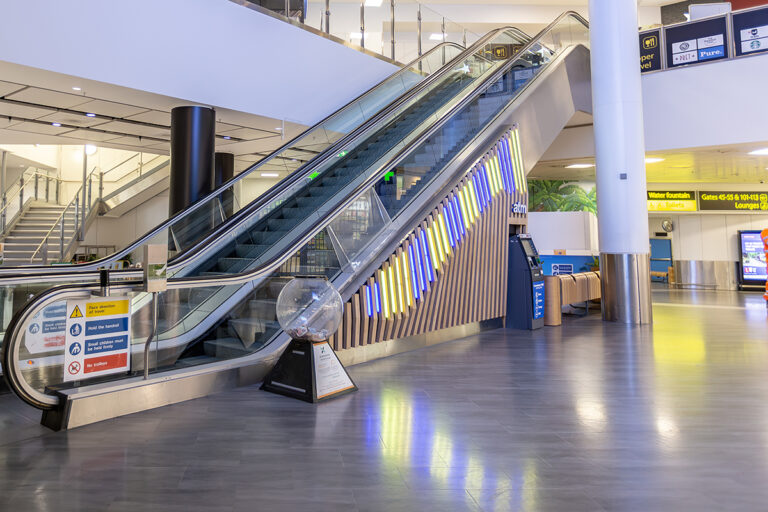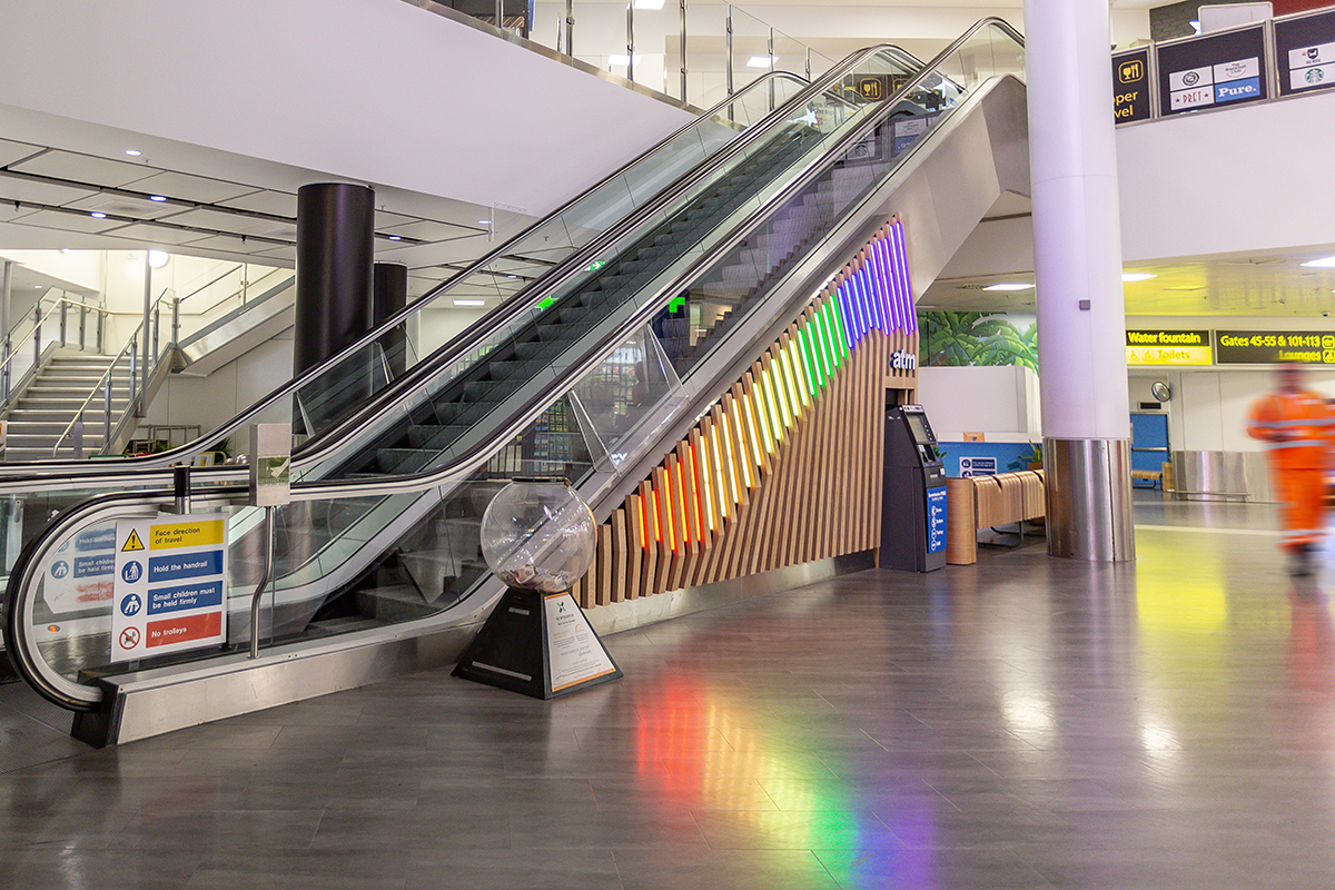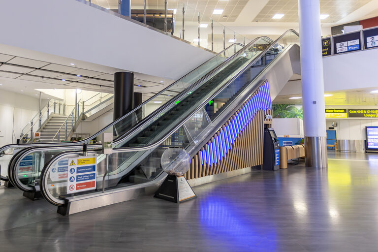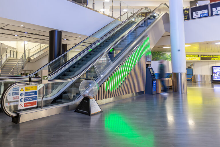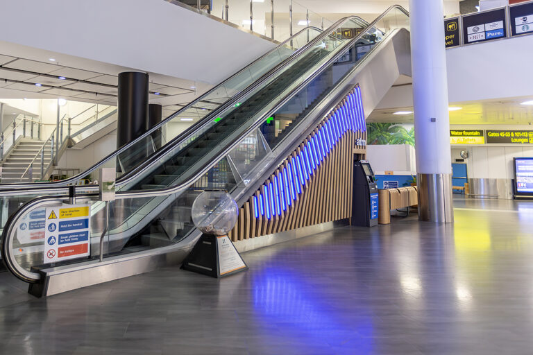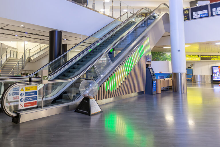 As part of an ongoing programme to enhance the passenger experience, London Gatwick has worked closely with Dextra Lighting and LEDextra for over a decade. This latest project focused specifically on the departure lounge of the North Terminal, which features an iconic sweeping staircase and escalator that guides passengers towards London Gatwick’s extensive range of restaurants, cafes and bars, colloquially known as the “Hollywood Stairs.” Working alongside BP Installations and architects 3D Reid, LEDextra was tasked with creating a lighting scheme that would complement the striking new cladding.