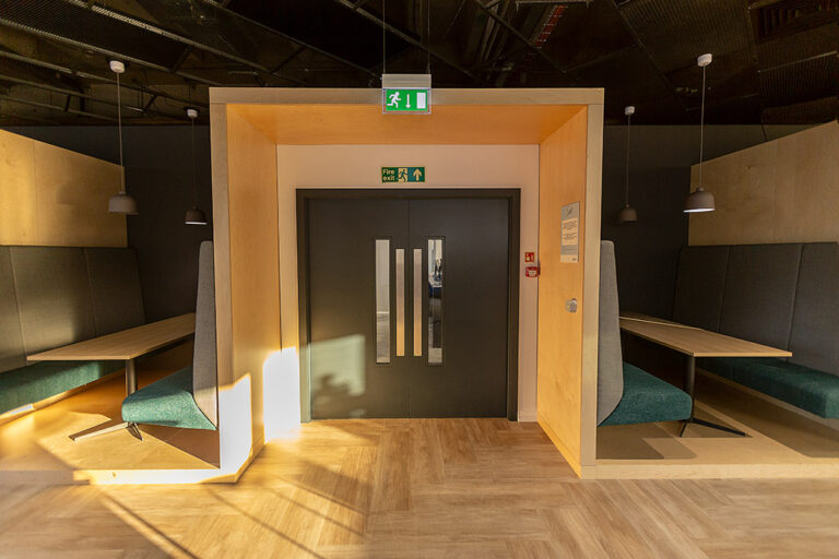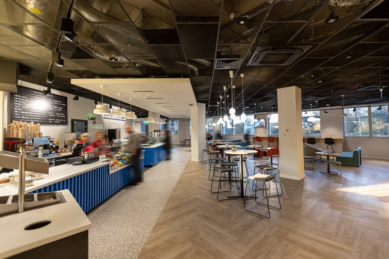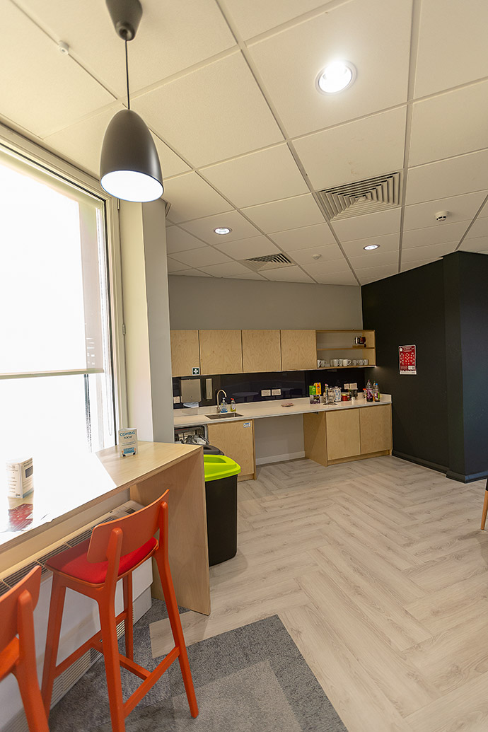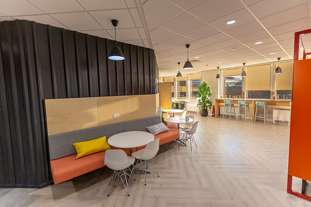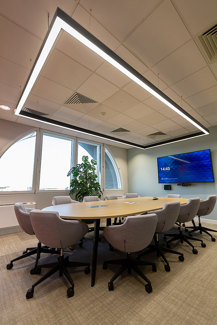 Works included changes to the ground floor entrance/cafe/reception and the office floors above, including meeting rooms and a board room.