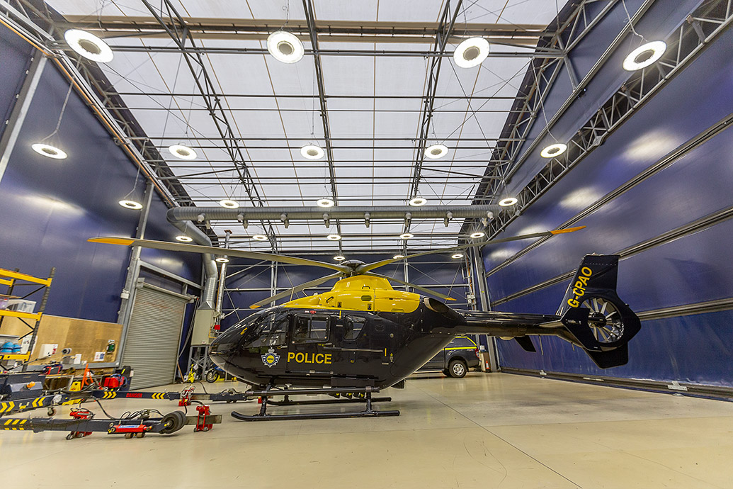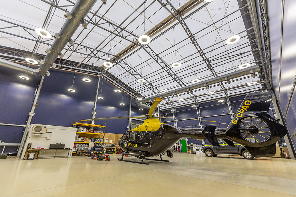 Dextra worked with Dorset Police and contractor Drewlec to renew old, inefficient lighting in the NPAS aircraft hangar based near Bournemouth Airport.