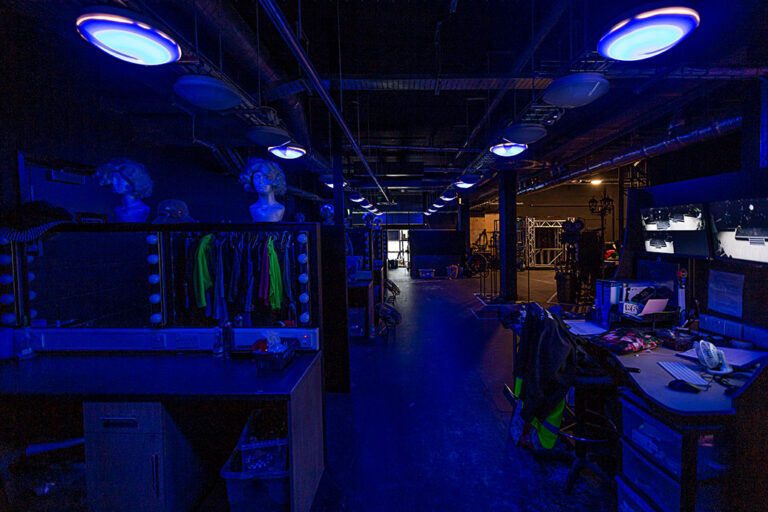 Used as a surface mounted luminaire for the backstage area, Amenity Decorative luminaires were installed with a special coloured gel added by the contractor. This was used to assist with movement backstage without causing light overspill onto the stage.