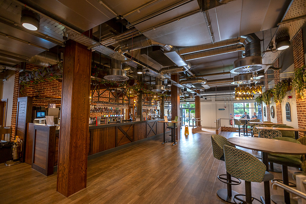 In the bar area, an open-plan exposed ceiling was created which required a luminaire that would blend in to the black ceiling area. Here, the Comtec Surface in a black finish, were installed.Elsewhere in the activities area, Dextra’s Highspot luminaires were installed. The Highspot provides a high lumen emergency efficient solution combined with lensed optics ideally suited to high level applications.
