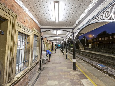 Northern’s Utilities Contracts and Data Manager, Euan Hilton explains why Rainhill was chosen: “Unfortunately, some lighting at the station had previously been damaged by vandals and feedback from colleagues was that the current lighting was not illuminating some areas of the station sufficiently. Although it might have been deemed a challenge, we wanted to install LED lighting at Rainhill to show that new technology could be fitted in a building of historic interest, running new beside old without detriment to the structure itself.”