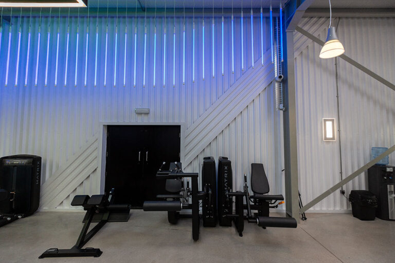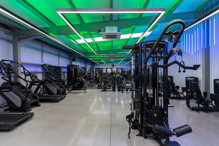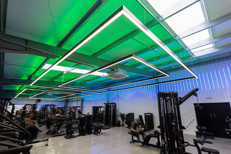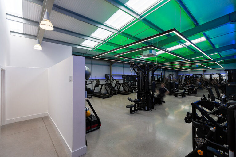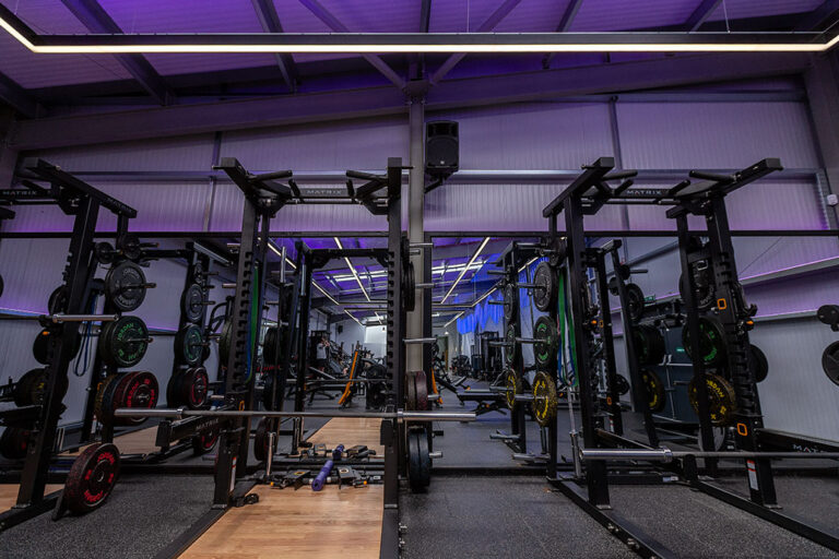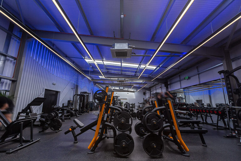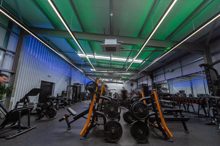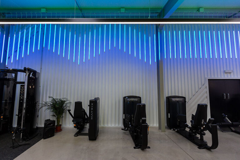 The RiversMeet Performance equipment was all purchased in matte black and placed in an industrial, purpose built setting, creating a perfect canvas to utilise modern and colour change lighting from Dextra Group in synergy with the environment in which they are installed. The different white lighting levels and multiple colour options creates a unique blend and adds character and energy to the space.