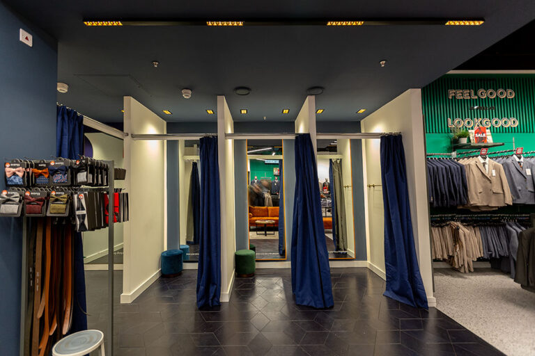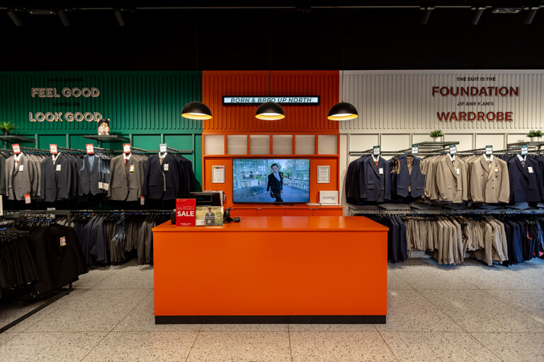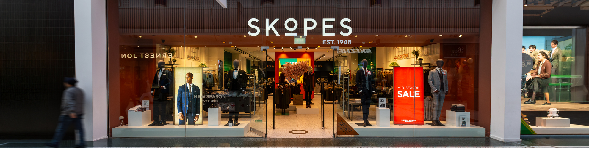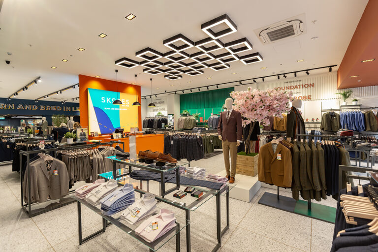 We were invited to put forward a proposal for their new Gateshead store, we were given creative freedom by the Head of Retail to come up with a design that emphasised the brands exciting portfolio of high quality clothing. Our vision for the Skopes store was to blend contemporary aesthetics with timeless elegance, aligning with Skopes reputation for quality and style. We concentrated on creating a spacious, welcoming atmosphere that would enhance the shopping experience. Key elements included sleek, modern fixtures, luxurious materials, and strategic lighting to highlight the sophistication of the Skopes collection.