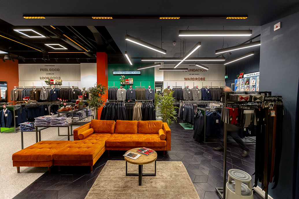 The Skopes team were extremely pleased with the final result, noting that the new lighting perfectly captured the essence of their brand. The fresh, modern design has received positive feedback from customers and has significantly enhanced the shopping experience. We continue to work closely with Skopes and their appointed shop fitters and over the last few years we have supplied the lighting to a number of new stores around the country including Braintree, Leeds & York.