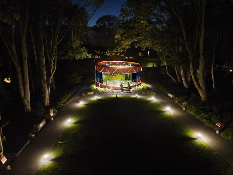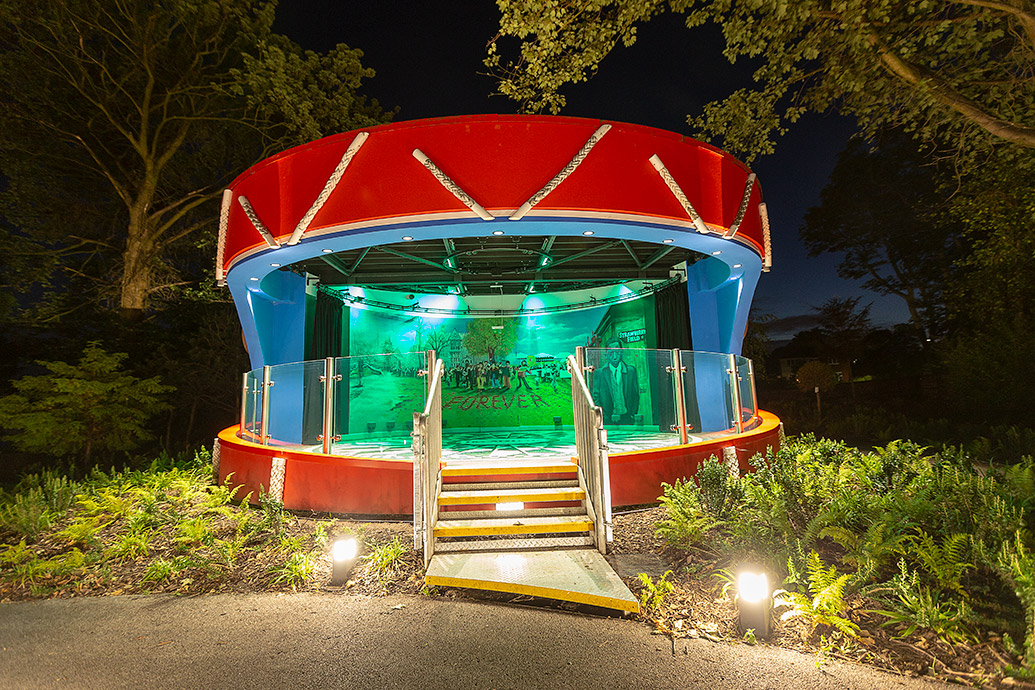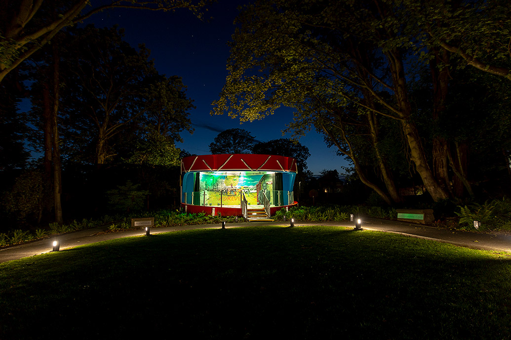 Dextra also supplied six Cariboni In-Ground Lights. These were used on the outside of the bandstand, spaced evenly, illuminating the upward white stripe at the base.