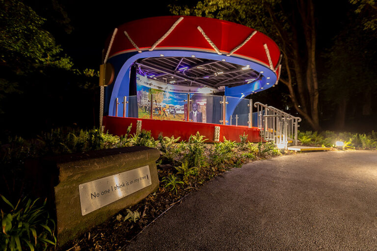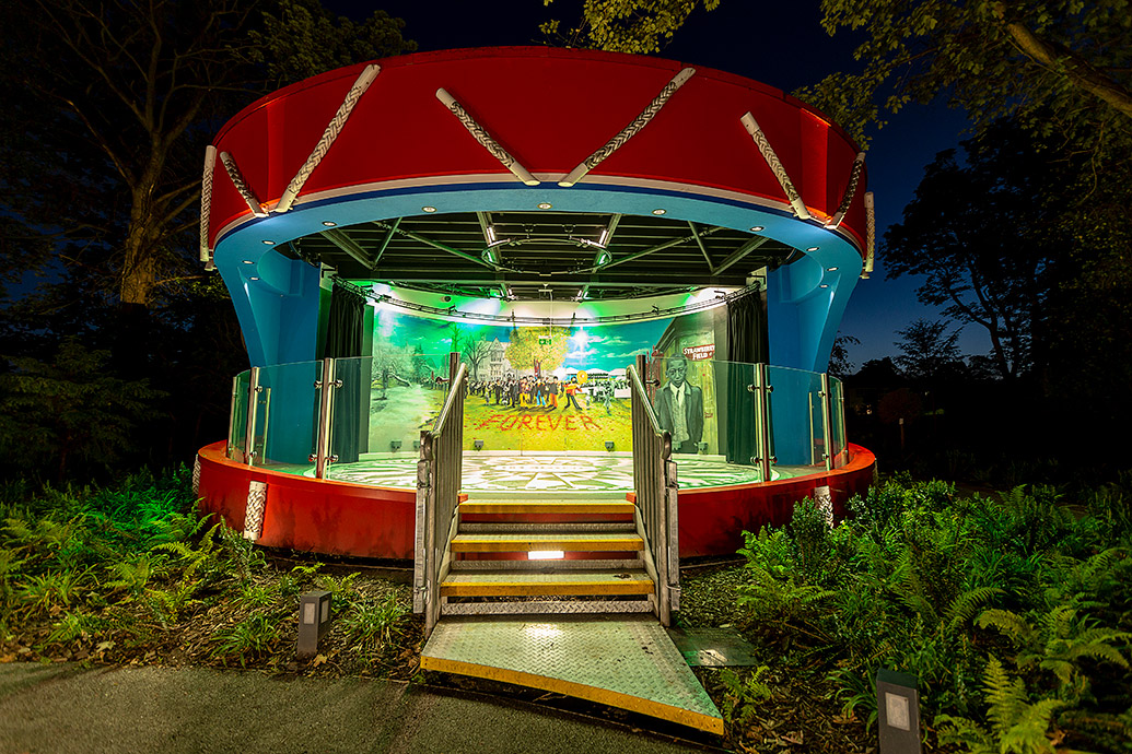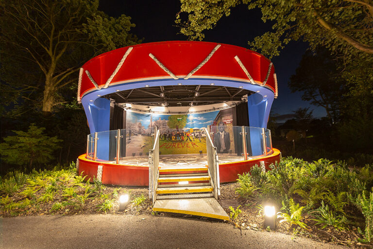As a music company with strong connections to Liverpool, The Salvation Army and LIPA, the Liverpool Institute of Performing Arts, Orange Amps donated a bandstand for Strawberry Field. The theme of the bandstand is based upon the drum depicted on the front of the Beatles album Sgt Pepper’s Lonely Hearts Club Band. The structure is 4.2m high and has a diameter of 8.5m in diameter and has a 5 degree tilt. Apart from live performances, it is hoped that this will attract more visitors to the centre which will assist The Salvation Army to fund their good work.