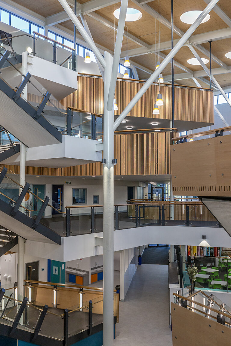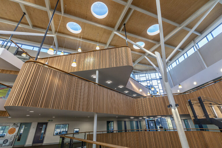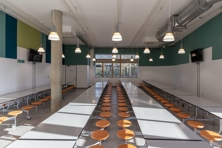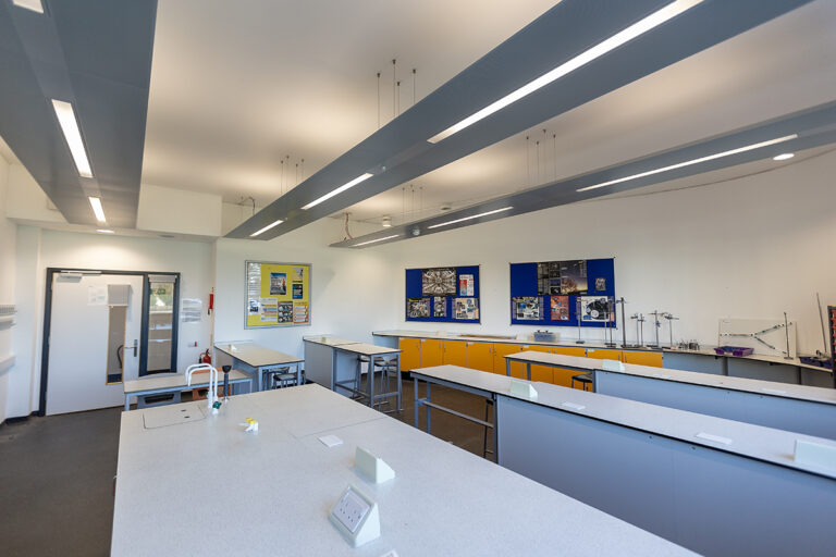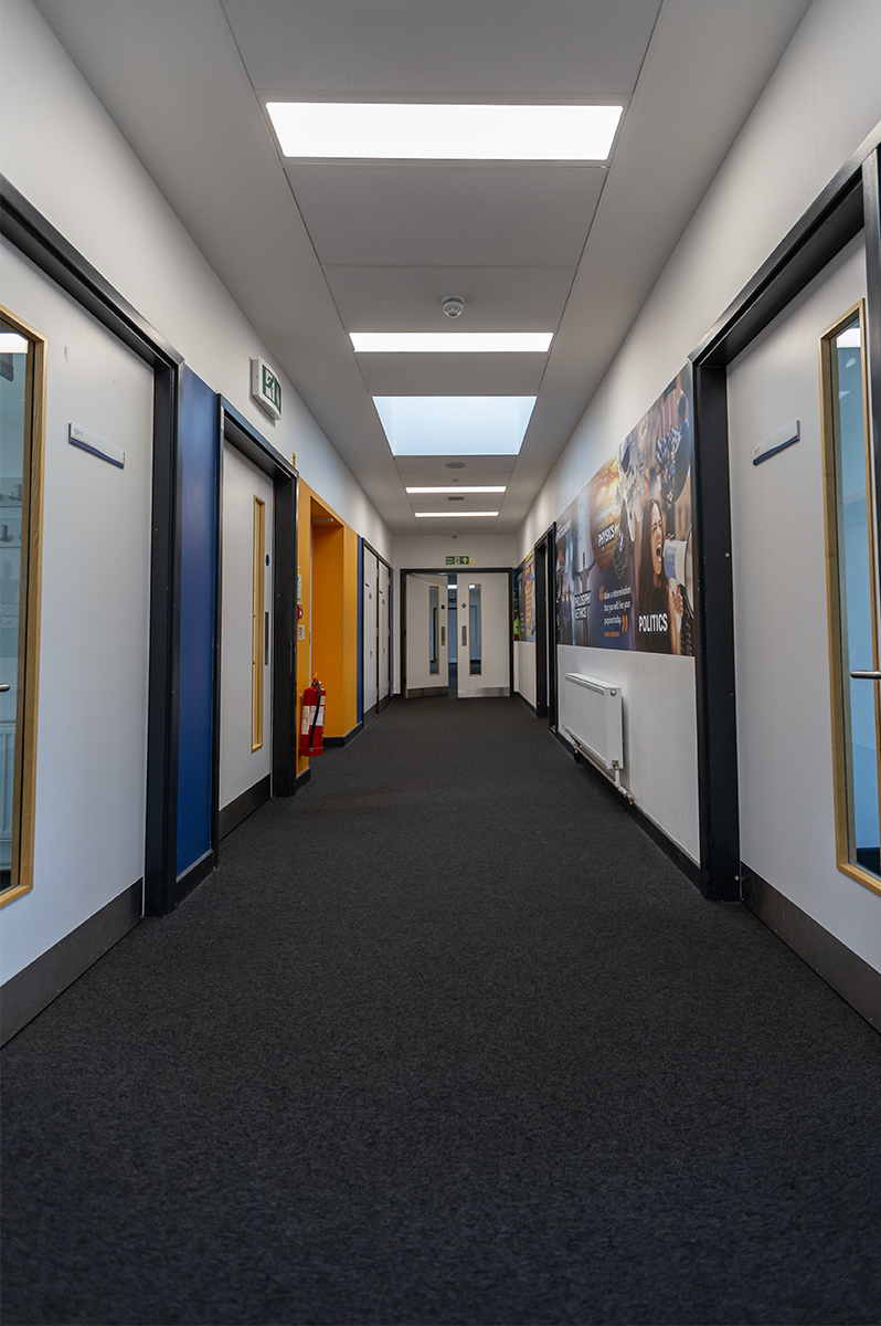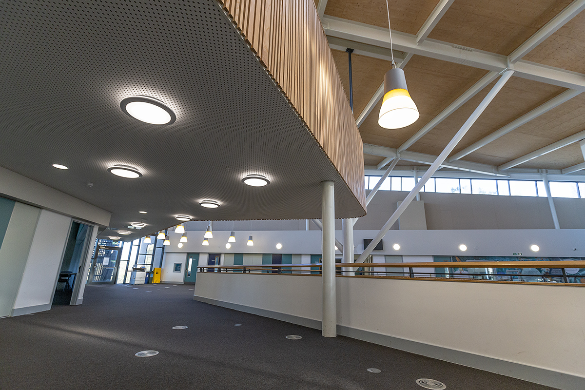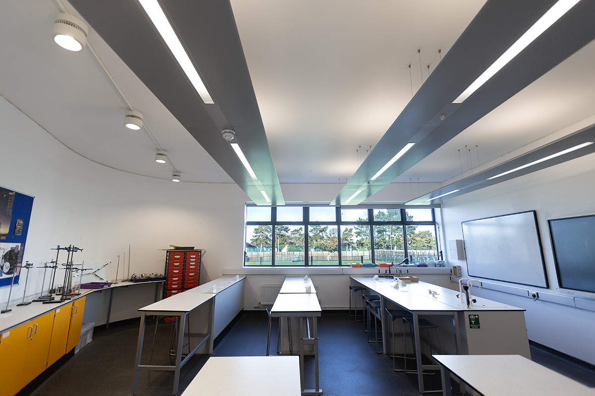 The Bourne Education Trust wanted to upgrade all the lighting at Teddington School, which used outdated lighting technology throughout. Working with contractor Baudelaire Ltd and consultant Synergy, Dextra provided new, efficient LED lighting to the school. Bespoke gear trays were also made to fit the existing raft systems within the classrooms.