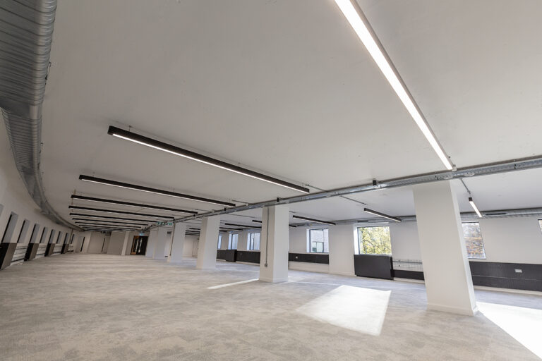 Working for Whitehead Building Services, alongside contractor Kier and consultant SDS, Dextra was able to overcome one of the biggest challenges of this project, to cover the architect’s requirement for a curved light fitting that met the aesthetics of the curved building as well as meeting the standards in an office environment. Dextra developed and launched a new Runway Curve product to accommodate this. It also supplied the Tridonic M Sensor that sits on a Helvar hard wired DALI system and provides EM Reporting. The Helvar lighting control system was installed as well.