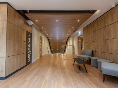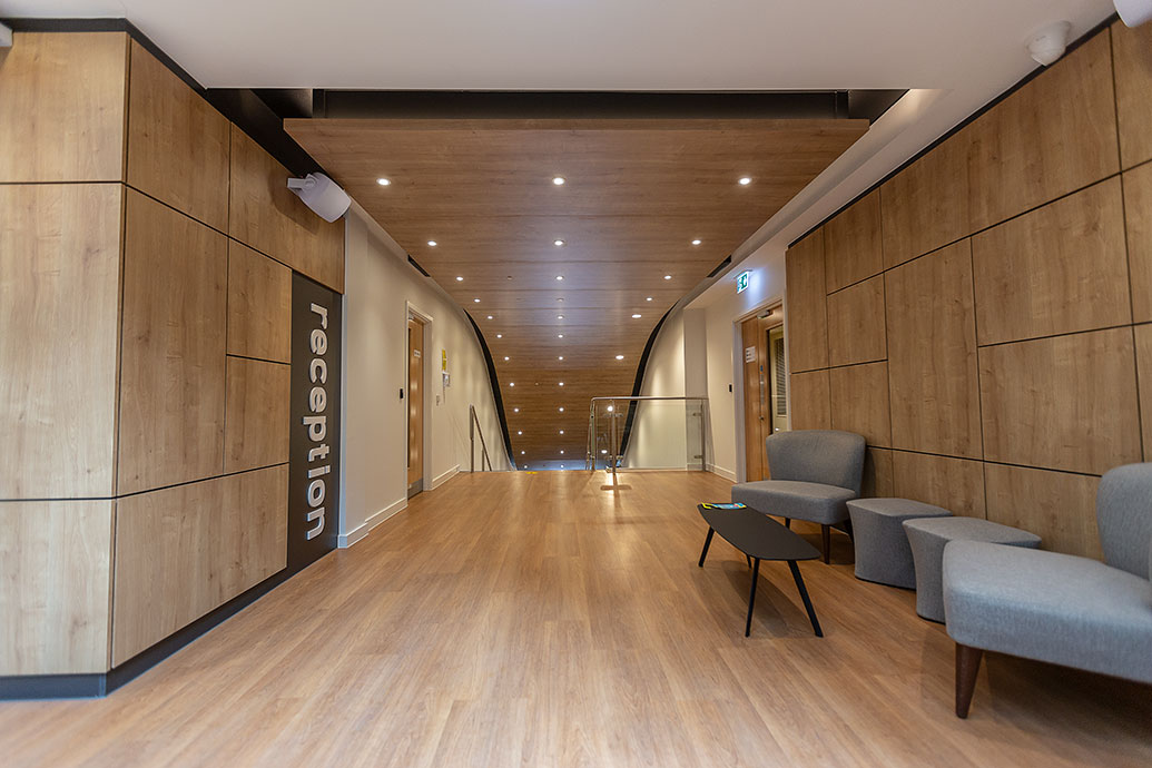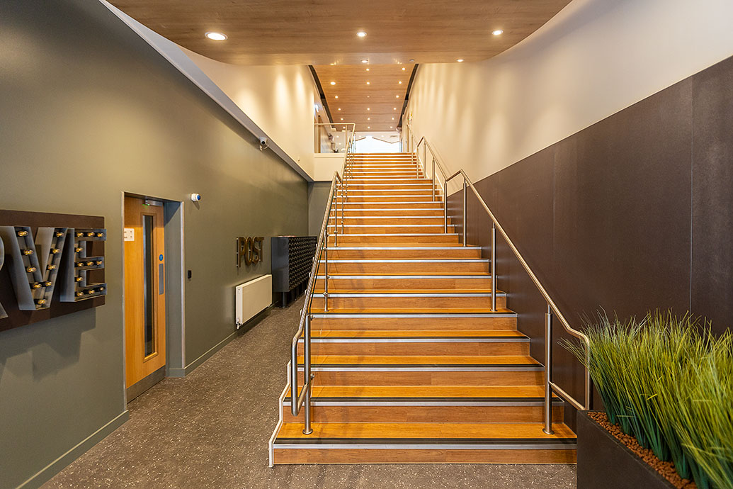 Chosen for the choice of coloured bezels it offers, which matched the architect’s requirements, 240 of Dextra’s Protec Fire Rated Downlight were installed in the entrance way to the building as well as the first-floor communal areas and cinema room. The Protec Fire Rated Downlight has been developed to offer customers a high-quality LED alternative to the traditional GU10 downlighter and incorporates the latest chip on board LED technology. This fixed position variant is both IP65 and fire rated.