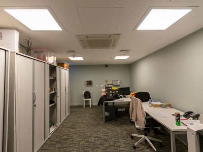 Dextra’s popular ModLED Slim was chosen for the office areas, where 10 were installed. The ModLED Slim brings an LED source that provides excellent energy efficiency and low maintenance. It provides a minimalist flat panel appearance with a homogenous lit diffuser. The highly efficient back lit design gives a superior energy efficiency and LED lifetime.