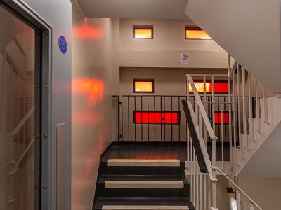 In the building’s stairwells, 120 Amenity Plus Metal Square luminaires were installed with R25C sensors. The Amenity Plus Metal Square, like the Circular version, is also manufactured with a high pressure die cast aluminium housing to help improve strength and durability. As well as ideal for stairwells, the Amenity Plus range is sealed to IP65 allowing for use in external areas such as under canopies or wall mounting, however is equally suited to a range of internal applications such as corridors, stairways, toilets and storage areas.