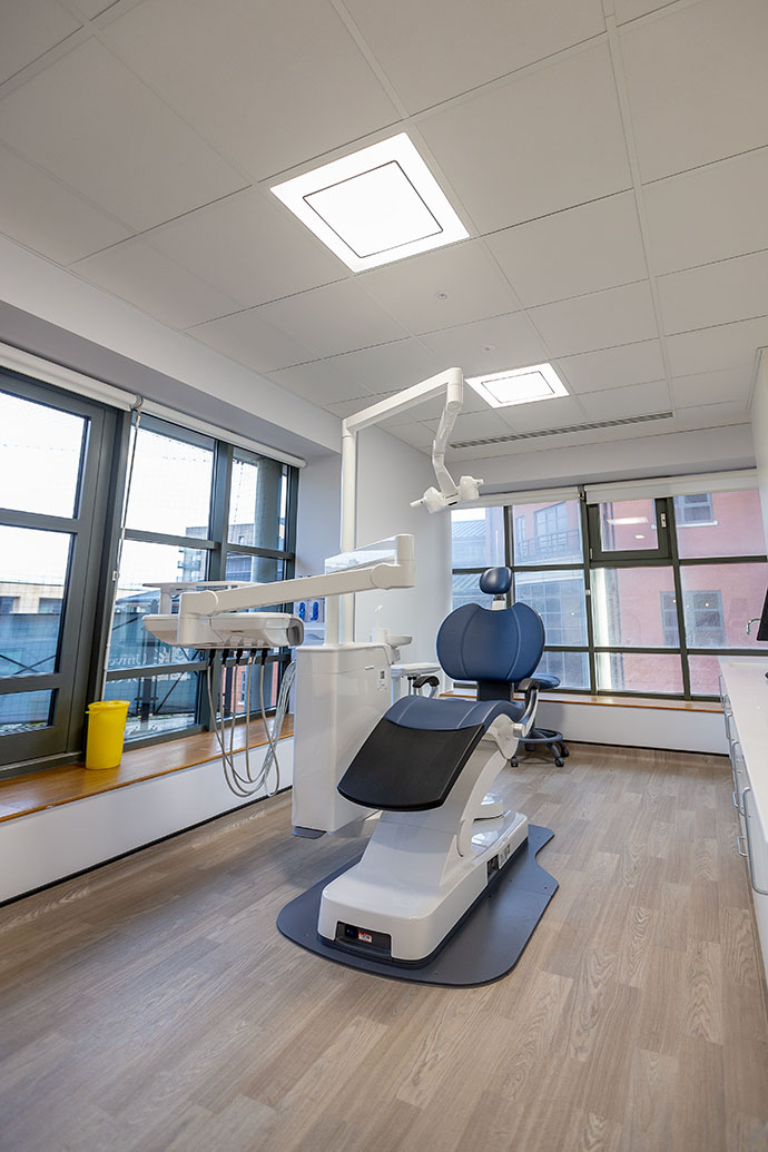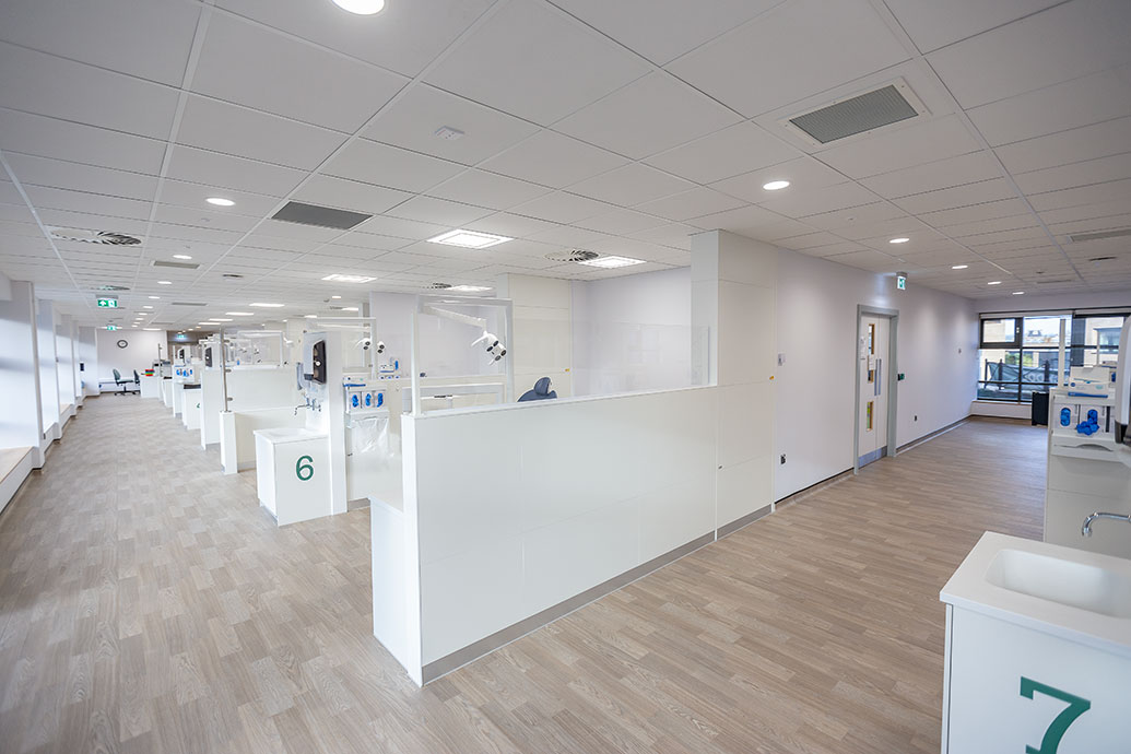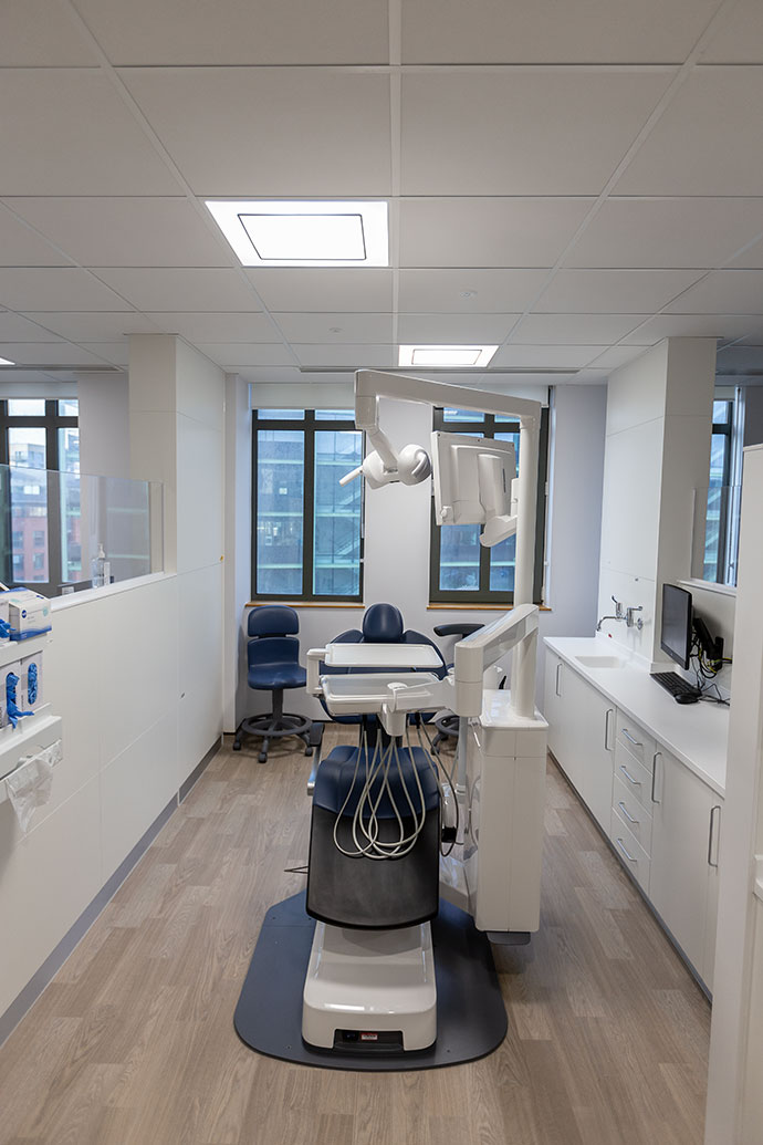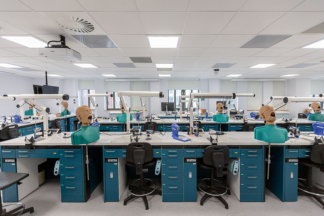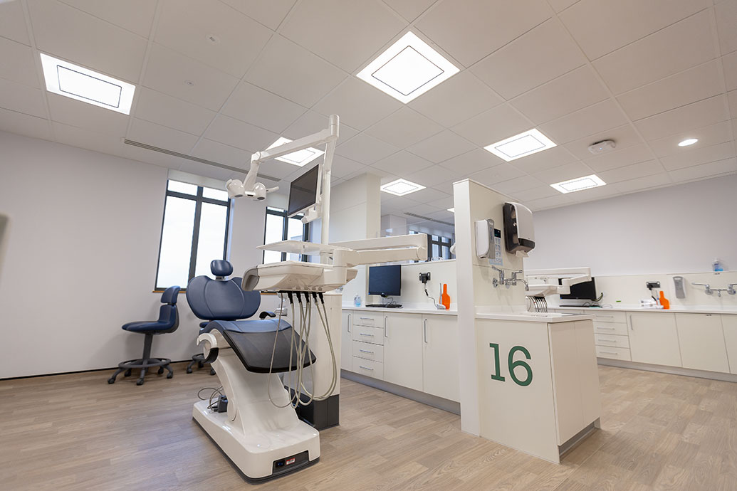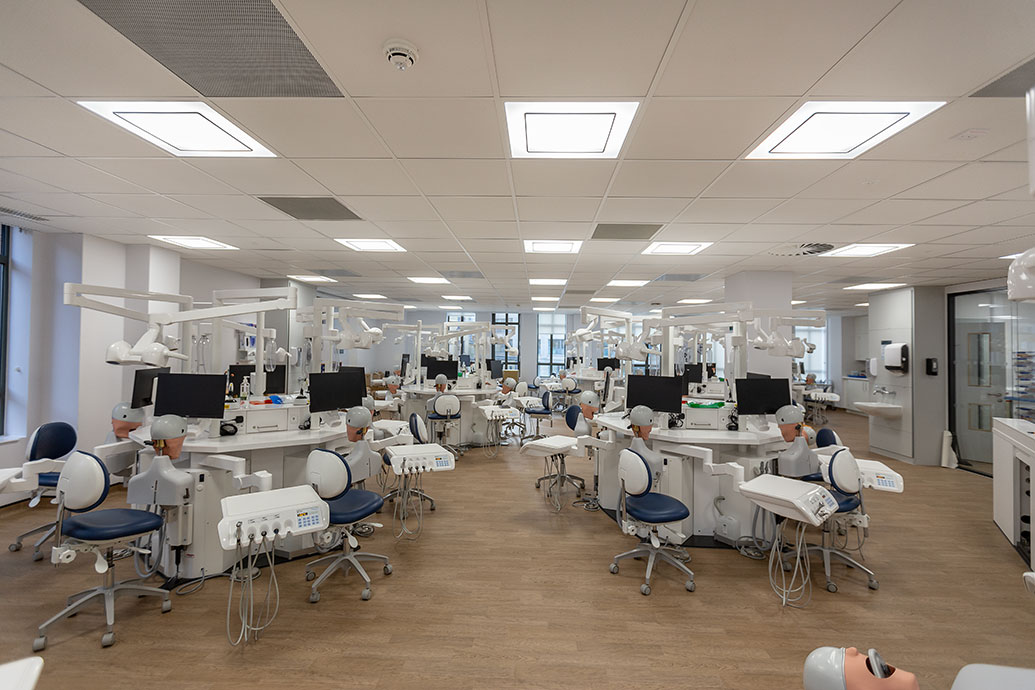 There are 119 dental chairs over six clinical areas where students are supported by a team of dental nurses, dental technicians, sterilisation staff, and patient administration teams.