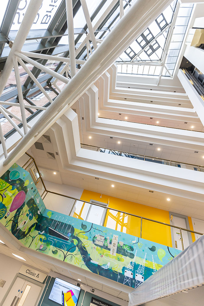 In addition, local artist Bex Glover has designed and painted two murals incorporating the toothy characters – one for the main reception area which features Bristol landmarks and one for the children’s waiting area with animals, plants, and flowers local to the area.